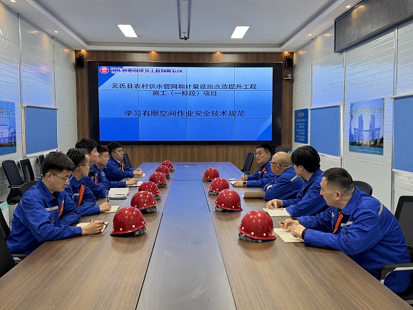 在项目层面,聚焦施工关键风险点实施精准培训。各项目部立足施工实际,聚焦重点工序、关键环节和风险领域,开展针对性强、实用性高的专项培训。元氏县医院新院项目部立足后期装修阶段高处作业频繁,重点围绕安全带规范佩戴、临边防护、脚手架搭设等内容开展培训,通过现场讲解、现场示范、现场考核,推动规范操作入脑入心。元氏供水管网和任泽区污水管网两个项目部围绕有限空间作业以及沟槽坍塌、管道坠落、触电、溺水等风险点,组织开展专项应急培训,着力提升现场风险辨识和应急防范能力。施工现场环境复杂的咸宁大屋邵项目部重点加强临时用电和大型机械设备管理,强化开展配电箱操作、电缆敷设、漏电保护器检测等实操培训,并针对塔吊、施工电梯、混凝土泵车等特种设备操作人员开展专项教育。